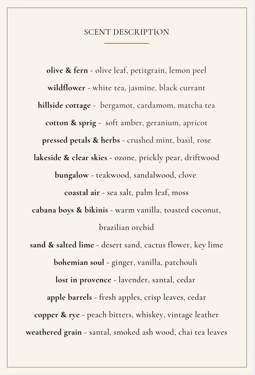 *Scents may be seasonal and limited during certain seasons. Please review current list in the selection bar.